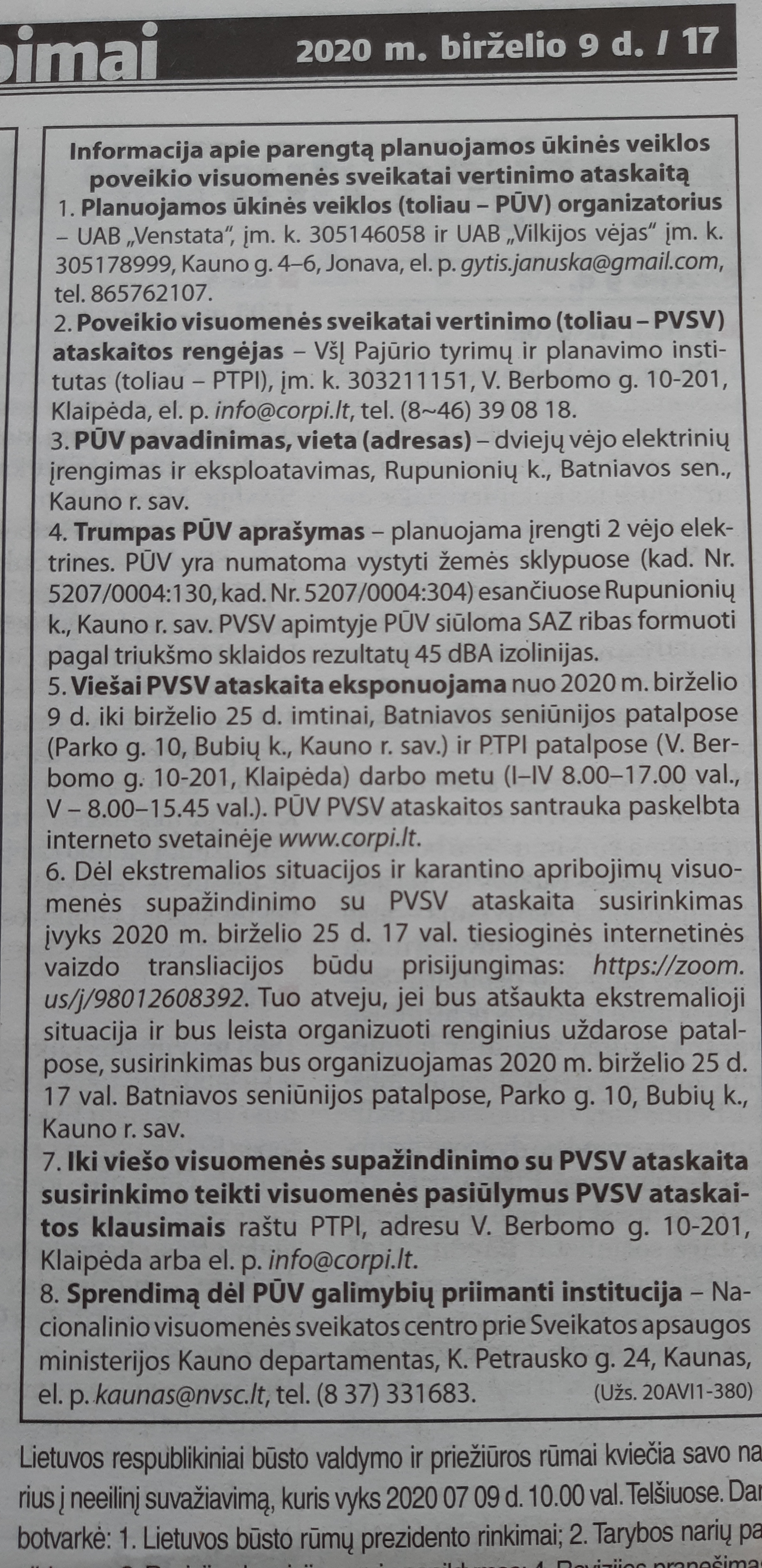 Parengti 3000 kW nominalios galios kitos paskirties inžinerinio statinio - vėjo jėgainės Ryšio g. 19, Rupunionių k., Kauno r., statybos projekto projektiniai pasiūlymai. Plačiau žr. "Dokumentai".